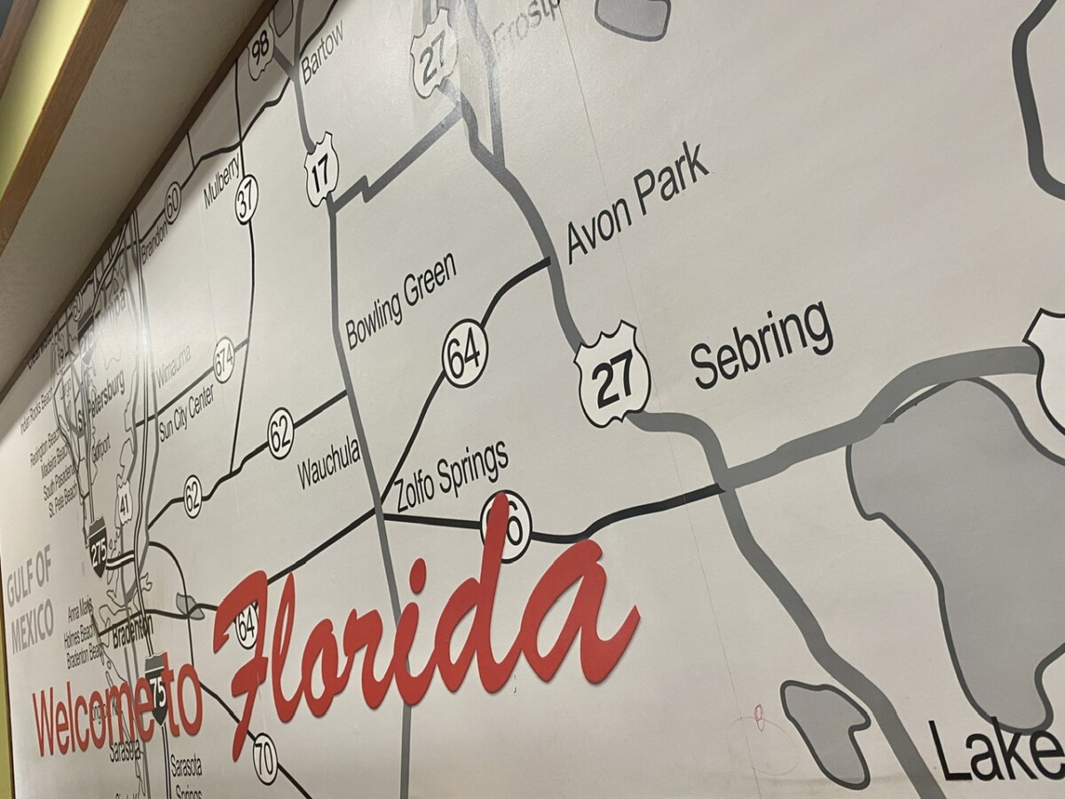 This was a 6.5 hour day for us, including a stop for dinner. We drive 55mph on this interstate as it’s a good road. the speed limit is 70, so yes, it takes us longer. We’ve been getting 8.5 miles per gallon on our visit in Florida. It is a super flat state to drive through.