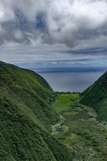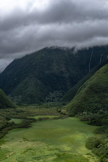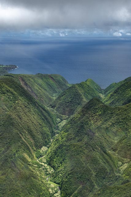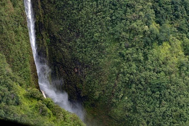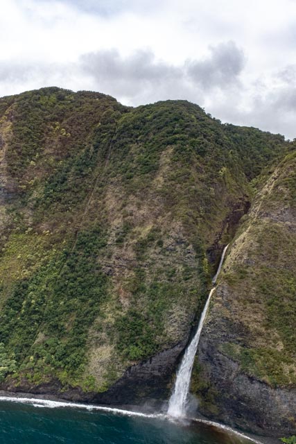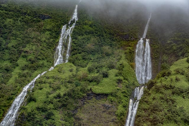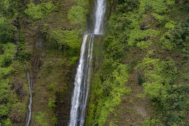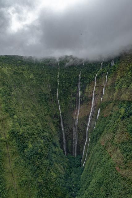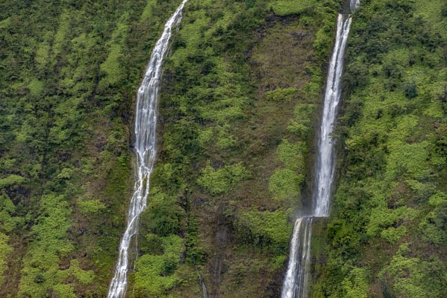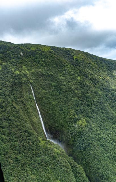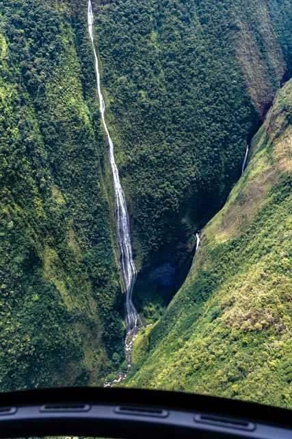 A wide valley came up and we flew to the rear of it to witness the four tallest waterfalls in Hawaii; up to a 1200 feet drop!