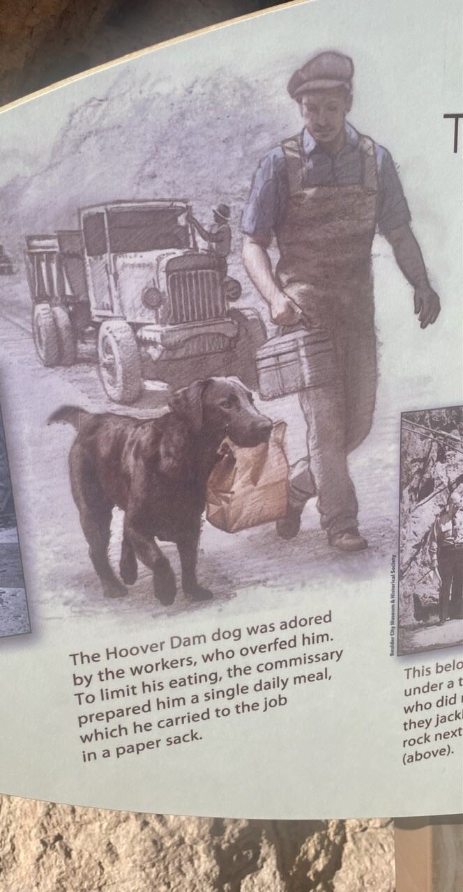 On our way back to the parking structure, we passed by my favorite spot, where the Hoover Dam Dog, named “Nig,” is memorialize and laid to rest.