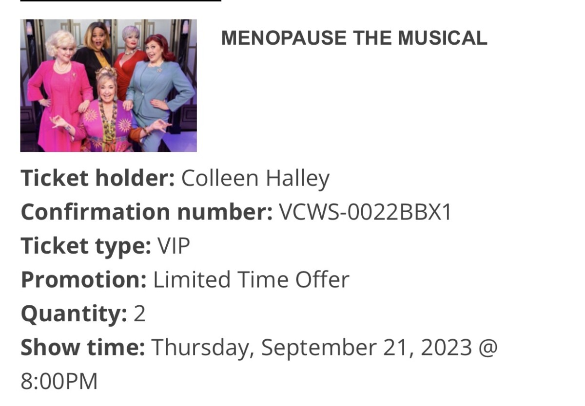 It was the perfect evening! We ate at Ruth’s Chris Steak House, yum! …then it was off to the “Menopause Musical.”