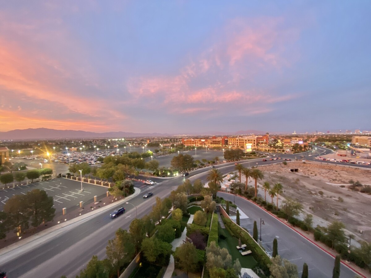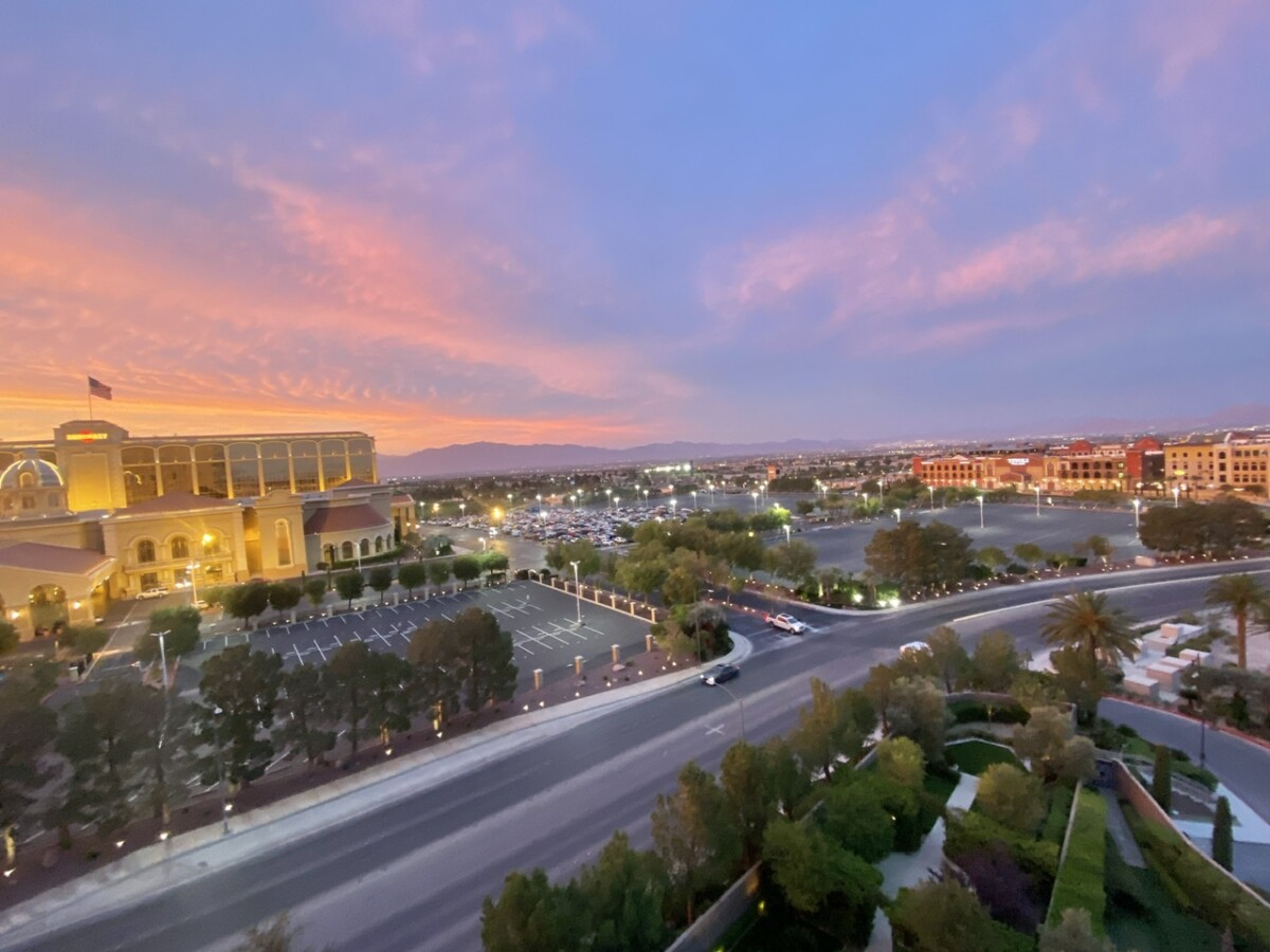 Before we left for the evening, I got some beautiful sunset photos, with the Vegas Strip in the background.