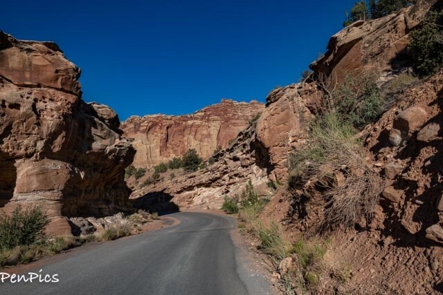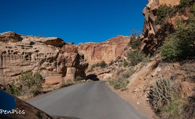 From Torrey, take Highway 24 east for 11 miles to the Visitor Center. Turn right toward the Visitor Center and continue along the road past the picnic area and campground to the entrance booth at the beginning of the Scenic Drive. Pay your entrance fee (honor system) and then get ready for a beautiful drive.