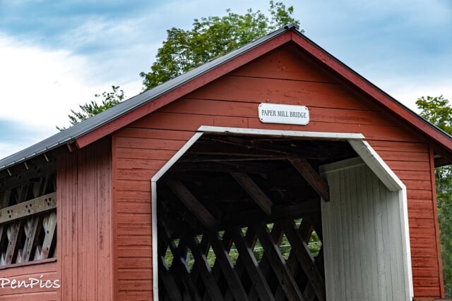 ⬆️ The current Paper Mill Covered Bridge was built in 2000 and is a replacement of the original that was built in 1889. This is a Town lattice truss spanning 122 feet along Murphy Road.